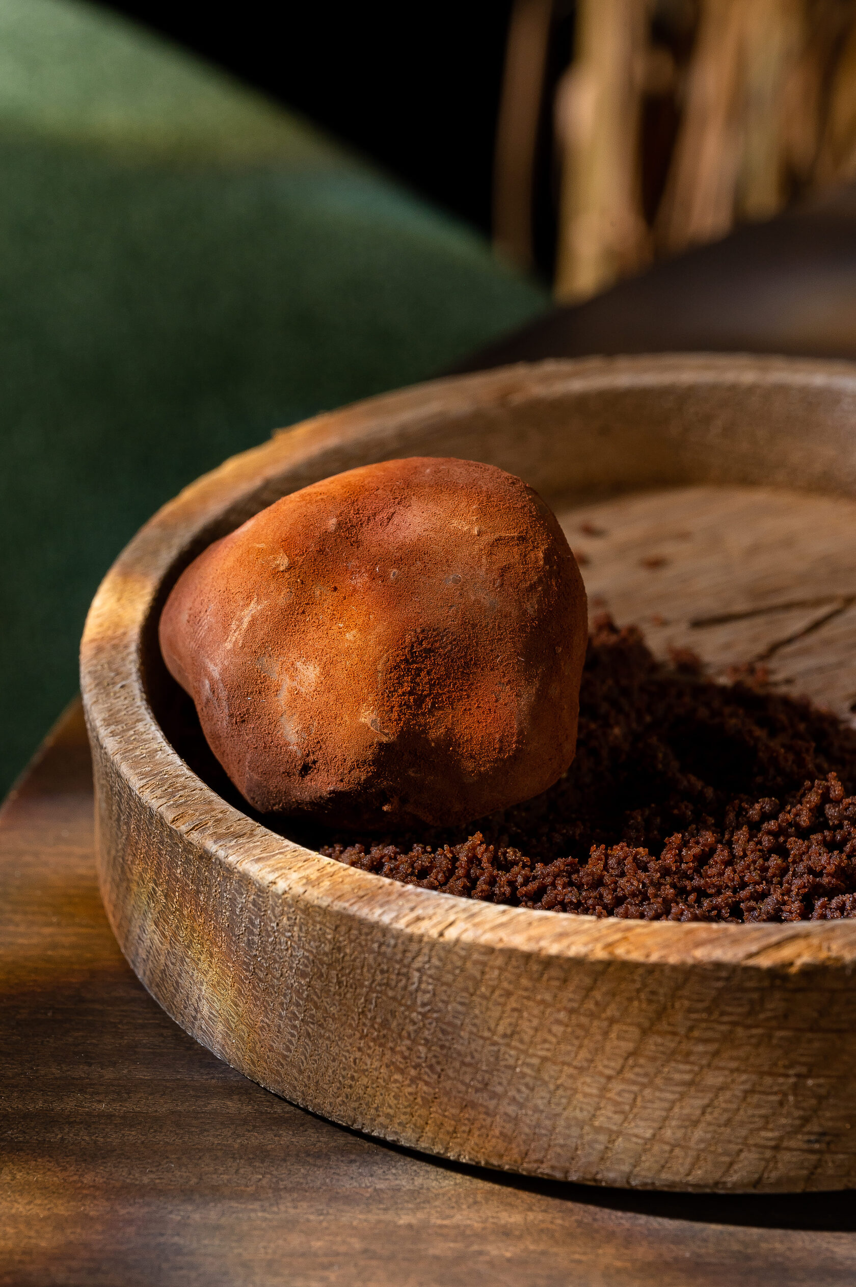 Злаковая булочка со взбитым маслом, копчёной солью и пудрой из мухомора