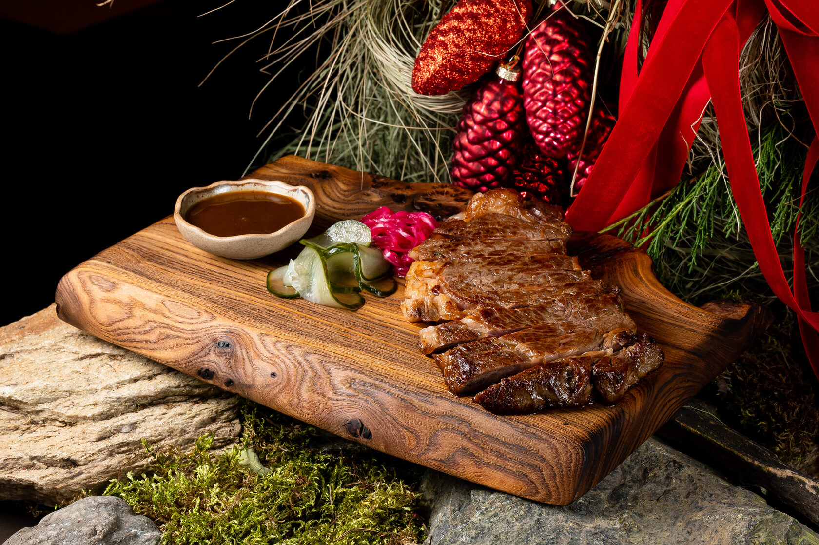 Филе миньон, картофельное пюре, соус перечный